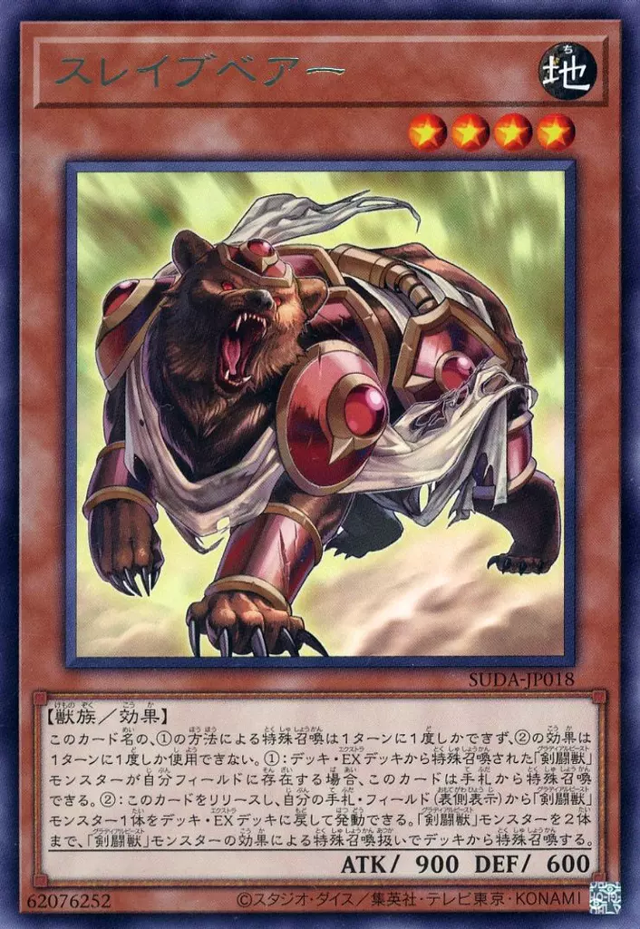 このカードが戦闘を行ったバトルフェイズ終了時にこのカードをデッキに戻す事で、デッキから「剣闘獣ラクエル」以外の「剣闘獣」と名のついたモンスター1体を特殊召喚する。