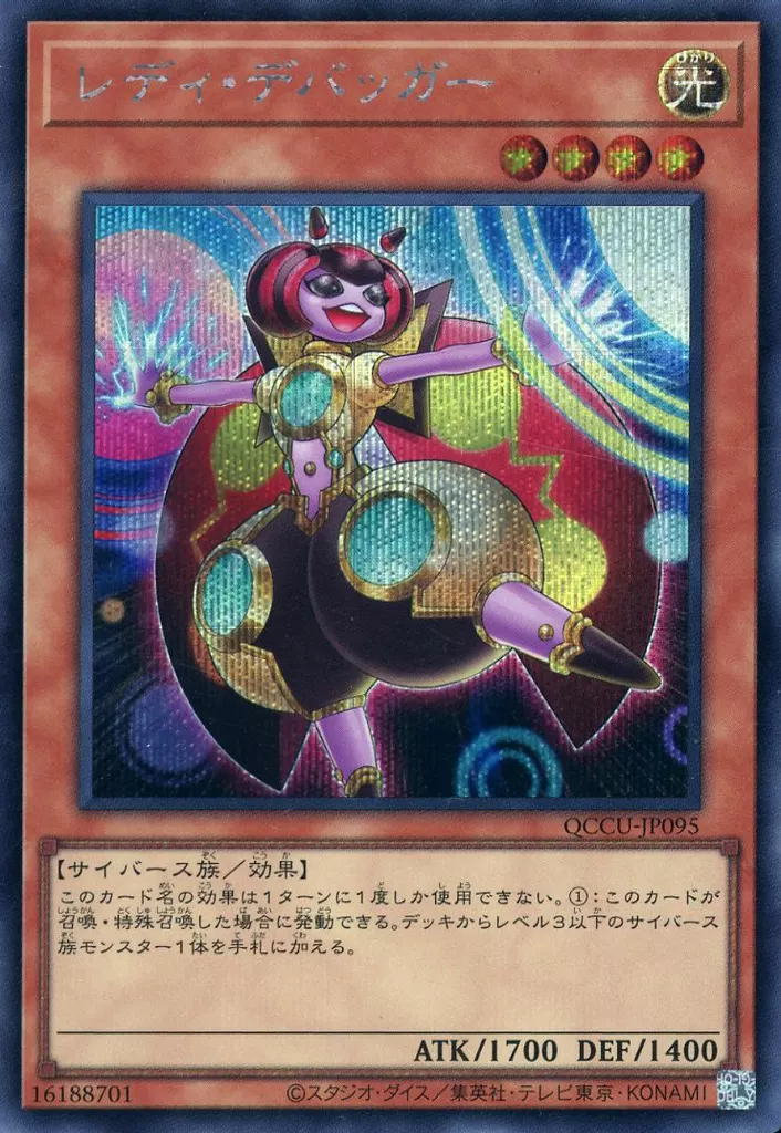 【カード検索】《レディ・デバッガー》 初動 2025.04.032025.04.13レディ・デバッガー星4/光属性/サイバース族/攻1700/守1400 このカード名の効果は1ターンに1度しか使用できない。 (1):このカードが召喚・特殊召喚した場合に発動できる。 デッキからレベル3以下のサイバース族モンスター1体を手札に加える。