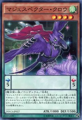 【カード検索】《マジェスペクター・クロウ》 初動 2025.04.07マジェスペクター・クロウ星4/風属性/魔法使い族/攻1000/守1500 【Pスケール:青5/赤5】 【モンスター効果】 「マジェスペクター・クロウ」の(1)のモンスター効果は1ターンに1度しか使用できない。 (1):このカードが召喚・特殊召喚に成功した時に発動できる。 デッキから「マジェスペクター」魔法カード1枚を手札に加える。 (2):このカードはモンスターゾーンに存在する限り、相手の効果の対象にならず、相手の効果では破壊されない。