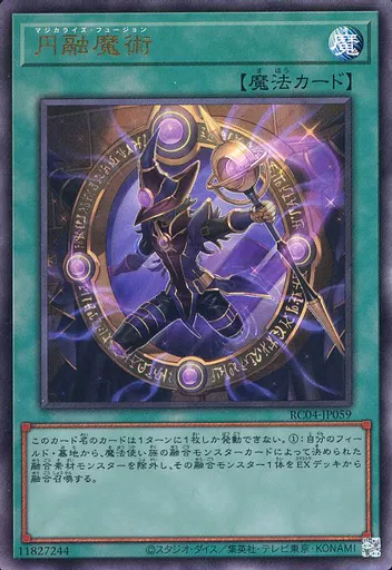 自分の手札・フィールドのモンスターを融合素材とし、ドラゴン族・魔法使い族の融合モンスター1体を融合召喚する。
