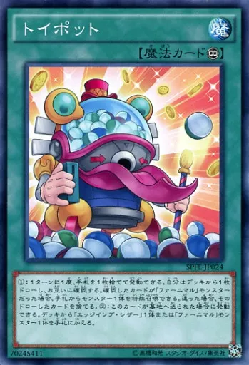 自分のデッキの一番上のカードをめくり、それがモンスターだった場合、そのモンスターを特殊召喚し、このカードを持ち主のデッキの一番下に戻す。違った場合、または特殊召喚できない場合、そのカードをデッキの一番下に戻す。